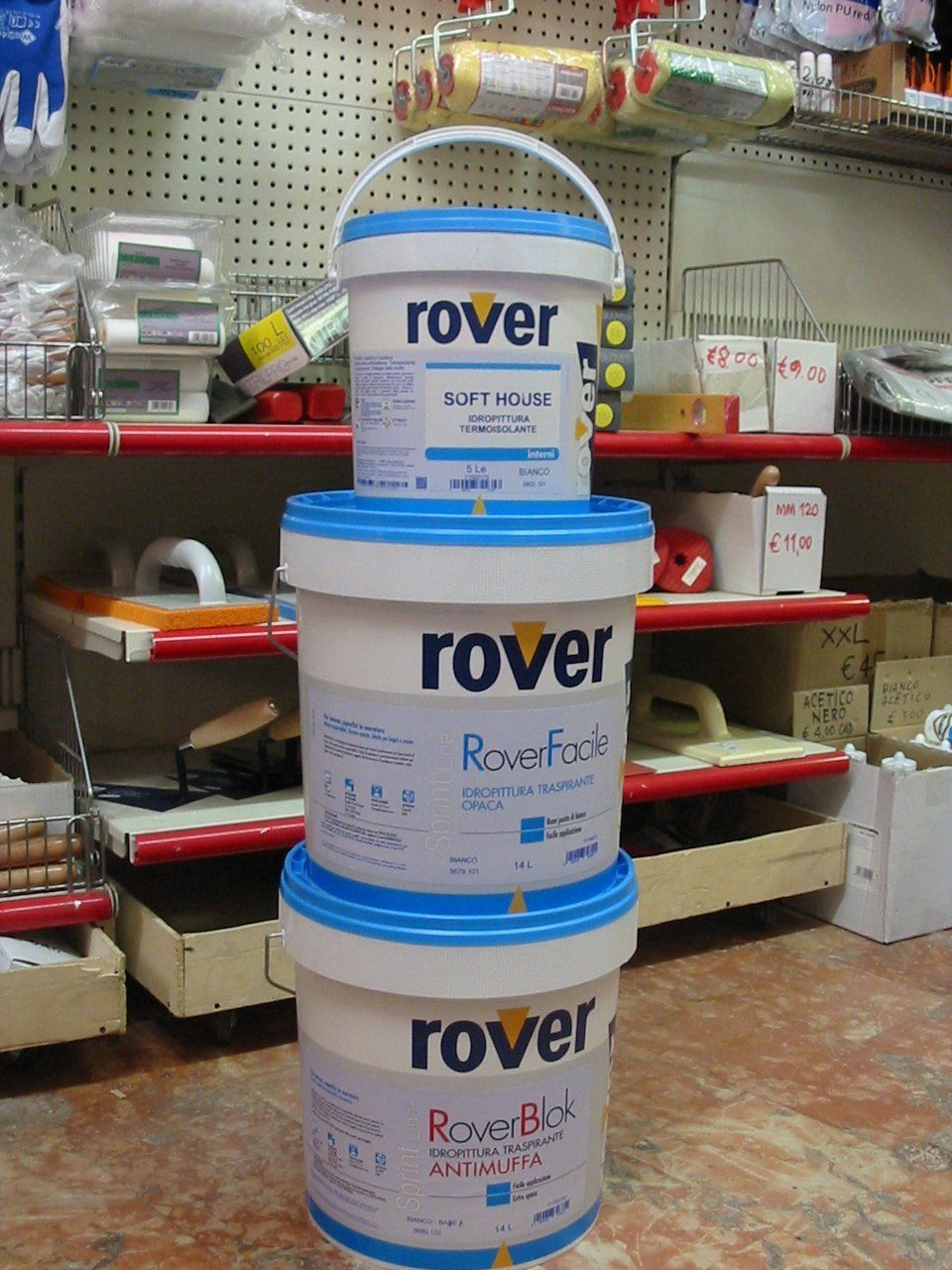 Dalla ventennale collaborazione di Paolo con la rinomata ditta ligure Boero Colori, una delle migliori aziende mondiali del settore pitture e colori, è nata l’idea di scegliere proprio questa azienda come nostro fornitore di fiducia per il settore pittura. La linea Rover è uno dei marchi del Gruppo Boero Colori. Con il nostro Tintometro Rover coloriamo smalti lucidi e opachi per legno o ferro, idropitture murali, pitture al quarzo per facciate, impregnanti e vernici per legno, sia lucide che satinate. In negozio troverai le cartelle colori dalle quali scegliere. Inoltre, abbiamo una vasta gamma di prodotti standard quali smalti, idropitture, impregnanti e vernici, smalto acrilico spray, antiruggine, smalti micacei, primer e fondi.
